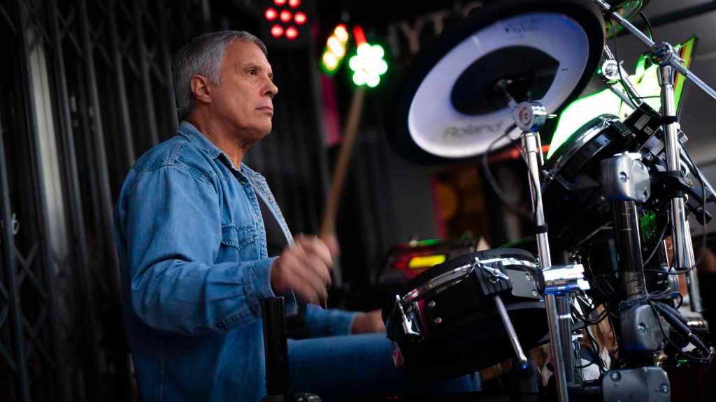 Musicien aguerri, Il joue bien plus qu’un simple accompagnement ; c’est le cœur rythmique qui pulse au sein de chaque morceau.